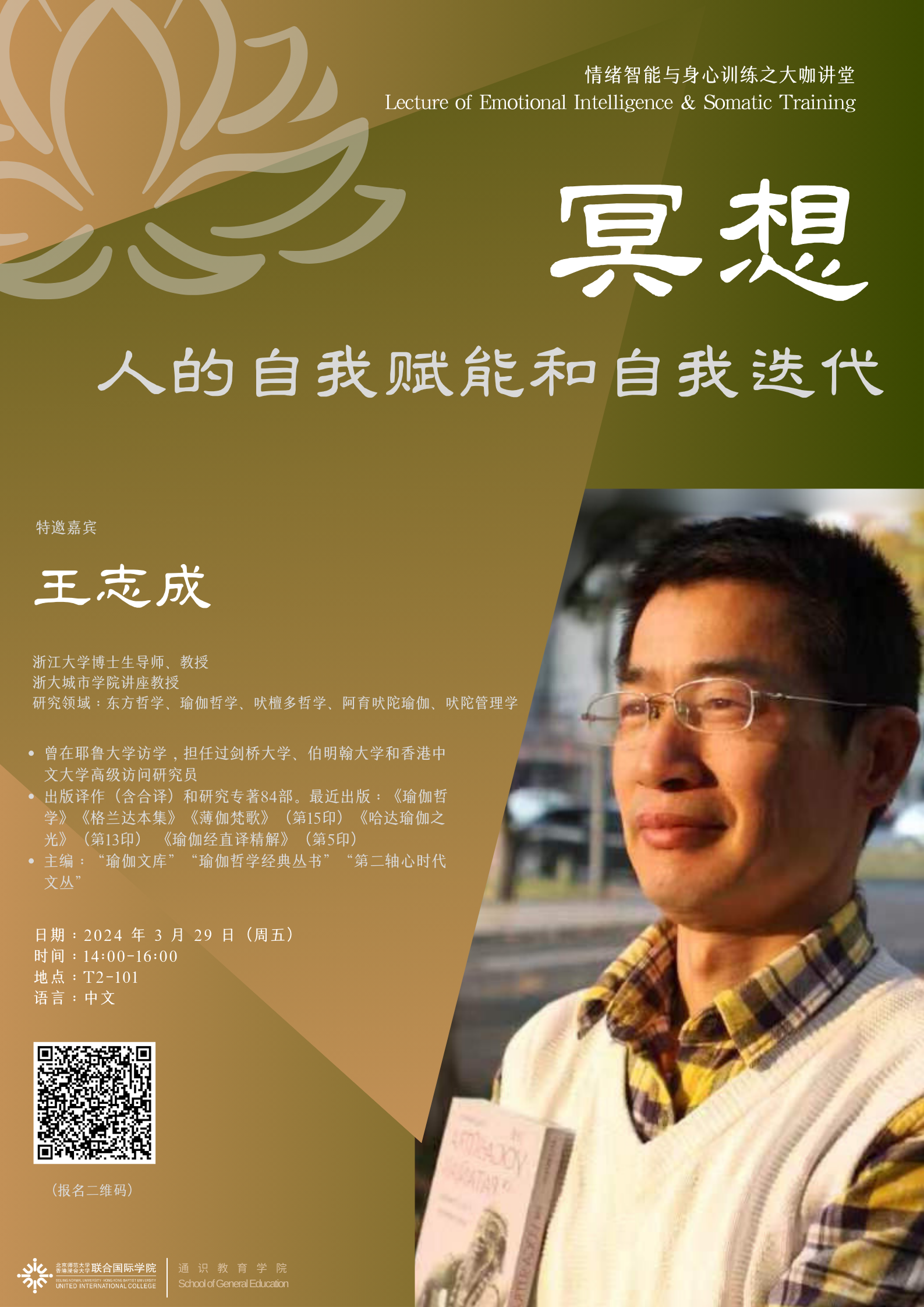 Dr. Zhicheng Wang is a Professor of the Philosophy Department and Director of the Institute of Religious Studies at Zhejiang University, and Honorary Director of Vedic Management Center in India. He values talent cultivation, and has cultivated many graduate students, including some doctoral students in the field of yoga and Vedanta philosophy. In consideration of the particularity of yoga studies, he also does a great deal of work on the training of yoga students beyond the University.