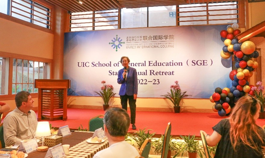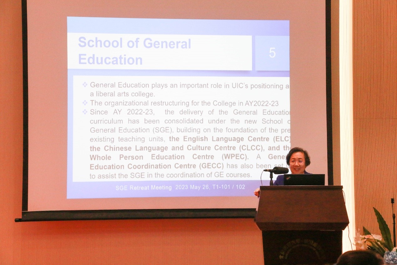 The School of General Education (SGE) Staff Retreat started with an all staff meeting held in the morning of 26 May 2023. Prof. Stella Cho, Associate Vice President (Student Development) and Acting Dean of SGE, delivered the opening remarks, in which she pointed out that SGE was devoted to providing, developing and coordinating a broad general education curriculum for cultivating students’ knowledge, skills and citizen participation capabilities. She further encouraged SGE staff to continuously improve their teaching abilities and fulfill their commitment to nurture students with a global outlook and a strong love for the nation China.
