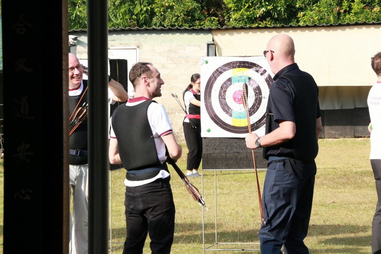 Before gaining hands-on experience, the group were led on a tour of the cultural exhibition hall by Master Li. Here, the participants were introduced to the fundamental cultural aspects of Chinese archery. A bilingual video provided further insight, detailing how this course has evolved at UIC over the years, benefiting both staff and students alike.