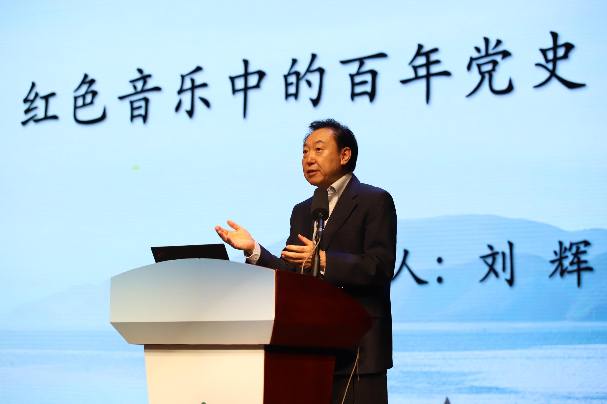 In his lecture Prof. Liu introduced the history and development of red patriotic songs, and showed videos representing classic red songs from different periods. He explained the link between the songs and Chinese ideology and the leadership of the Chinese Communist Party, which were influenced by Chinese music culture and various historical periods of the Chinese Revolution. Prof. Liu said "Red music is an important part of Chinese music culture, and we should inherit and develop the spirit of red music."