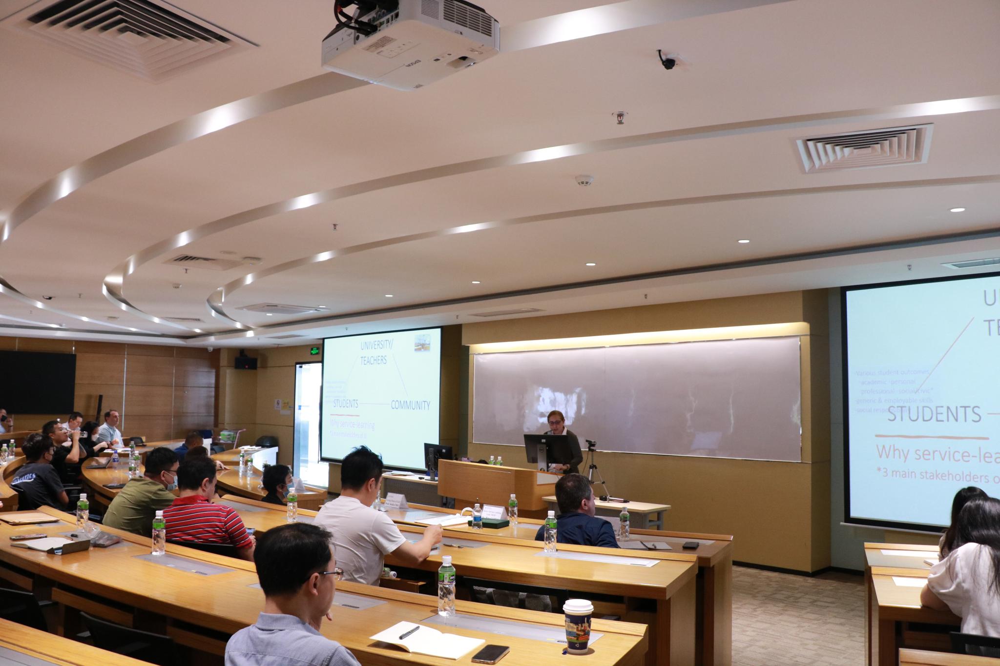 Dr. Camus’s presentation examined what service-learning is. Dr. Camus explained the meanings of the concepts of “service” and of “learning,” discussing the kinds of service that service-learning can provide to our communities, and paying special attention to how learning takes place in service-learning. Dr. Camus emphasized that reflection on the part of students is what transforms the real-life experience of service into learning. Following this theoretical discussion, Dr. Camus showed specific examples of successful service-learning courses at HKBU.