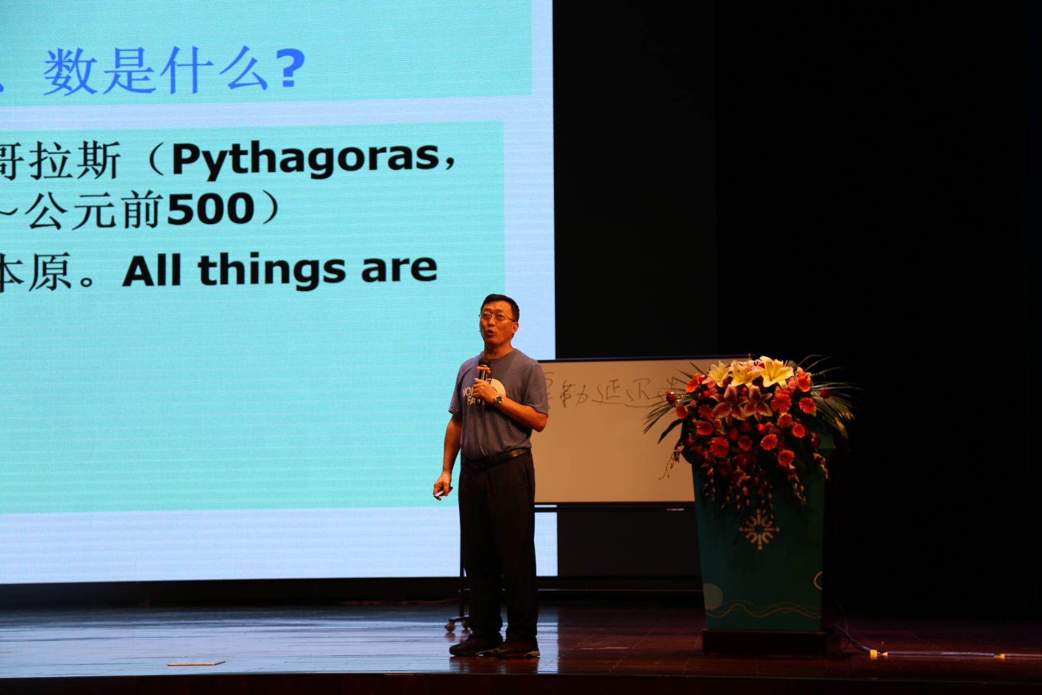 对于量子力学及量子信息,吴教授分享了他的几点思考:一是关于哲学与科学的关系,他认为,缺乏哲学的思考难以实现科学的跨越。正如爱因斯坦所说,任何描述物理实在的完备物理理论都必须具备完备性判据和实在性判据,科学并不就是一些定律的汇集,也不是许多不相关知识的目录,它是人类头脑的发明。这也说明了哲学的思维对于科学研究的重要性,也是鼓励学子们在学习科学知识的同时还应该培养哲学的、具有创造性的思考能力。二是关于量子世界,吴教授说量子理论并不是唯一的,这也就意味着量子世界可能是多个的。此外,吴教授还用幽默的语言谈了他对量子柴郡猫、波粒二象性的思考。