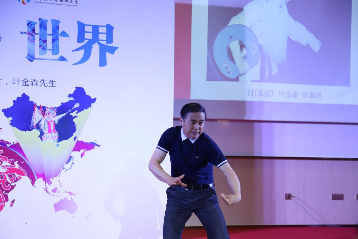 叶金森先生认为要对外传播中国文化,最好要懂得和使用对方的语言。他在匈牙利交流期间,与匈牙利作家编排当地人们可理解的《西游记》剧目,并且用匈牙利语演出,取得了非常好的反响。在1994年第10届国际动作戏剧汇演中,《西游记》获得最佳编剧和最佳表演奖。在演讲现场,叶金森先生与大家分享在匈牙利排戏时的趣事,还用用匈牙利语表演了戏剧中的一段台词。