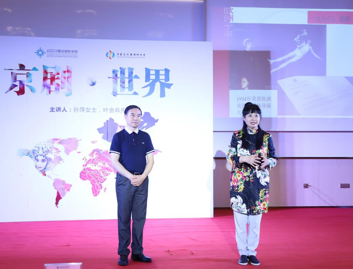 5月10日下午,中华文化传播研究院2017-2018驻校艺术家孙萍女士、叶金森先生再次来到UIC,在冯燊均演讲厅(T2-101)为全校师生带来“京剧·世界”的主题演讲。