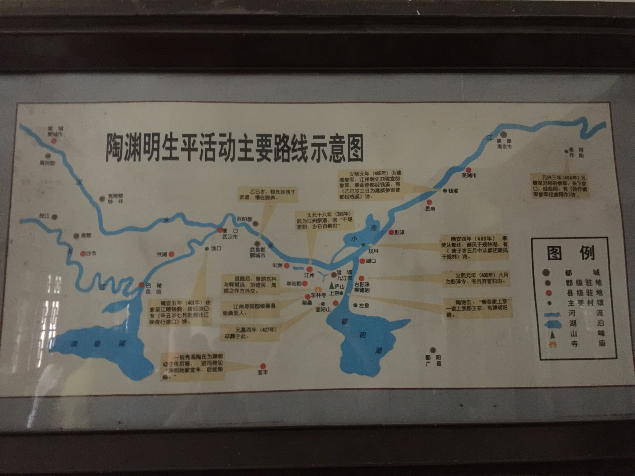 随后我们前往建于九江市沙河街东北隅的陶渊明纪念馆。纪念馆主要由陶靖节祠、陶公墓、陶渊明生平事略陈列馆构成,庭院内草色青青,塑像、匾额、楹联、石刻等随处可见,还收藏和展出与陶渊明相关的图表、照片、家谱、历代陶学专著等珍贵资料。陶公墓四周层林迭翠,环境清幽,但年代久远,已不可考。尽管如此,置身纪念馆内,重吟陶公诗,遥想诗人当年情境,亦感觉离诗人更近了些,也更能感受到历史文化的传承。