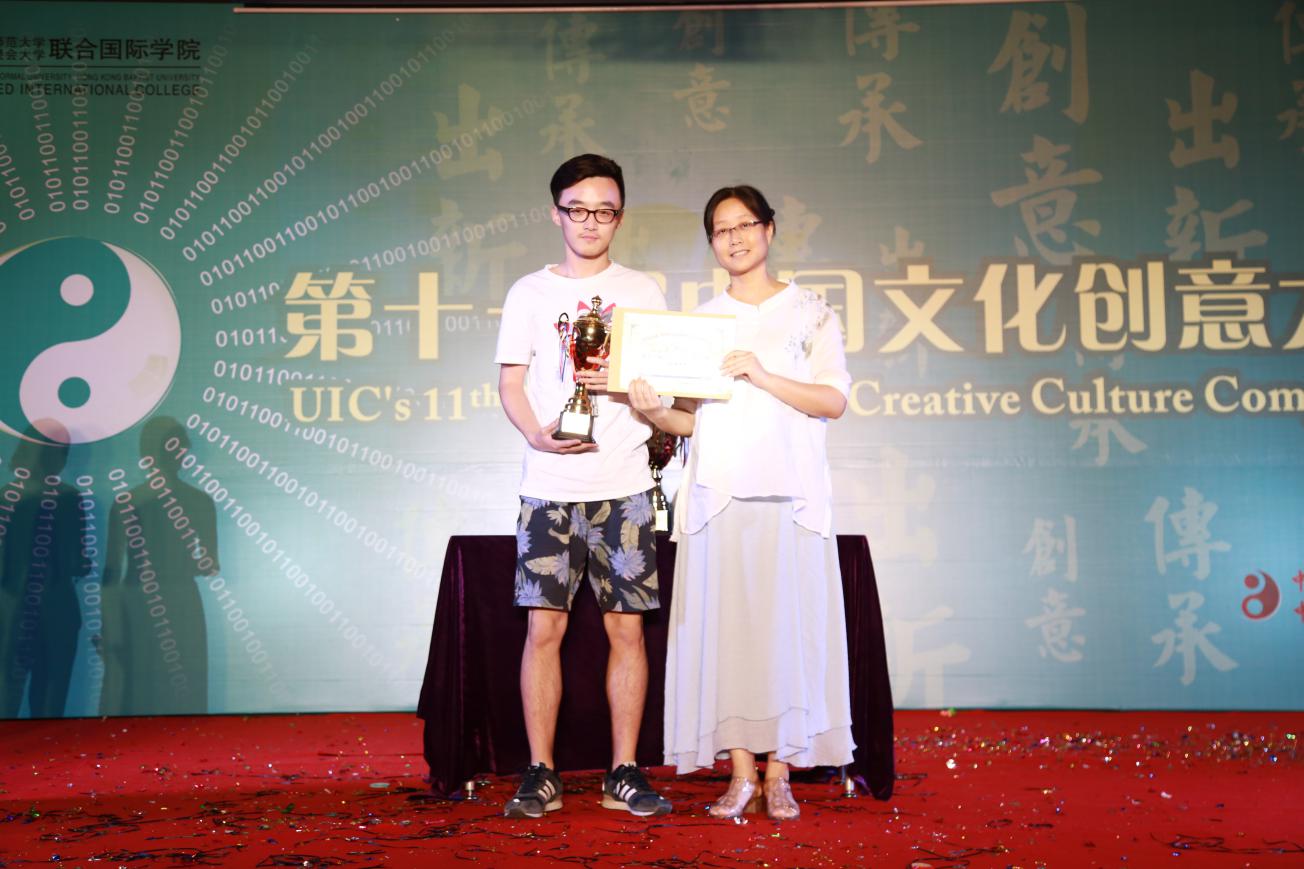 (邓泆镝同学荣获“UIC影帝”称号) ( 张馨元同学荣获“UIC影后”称号)