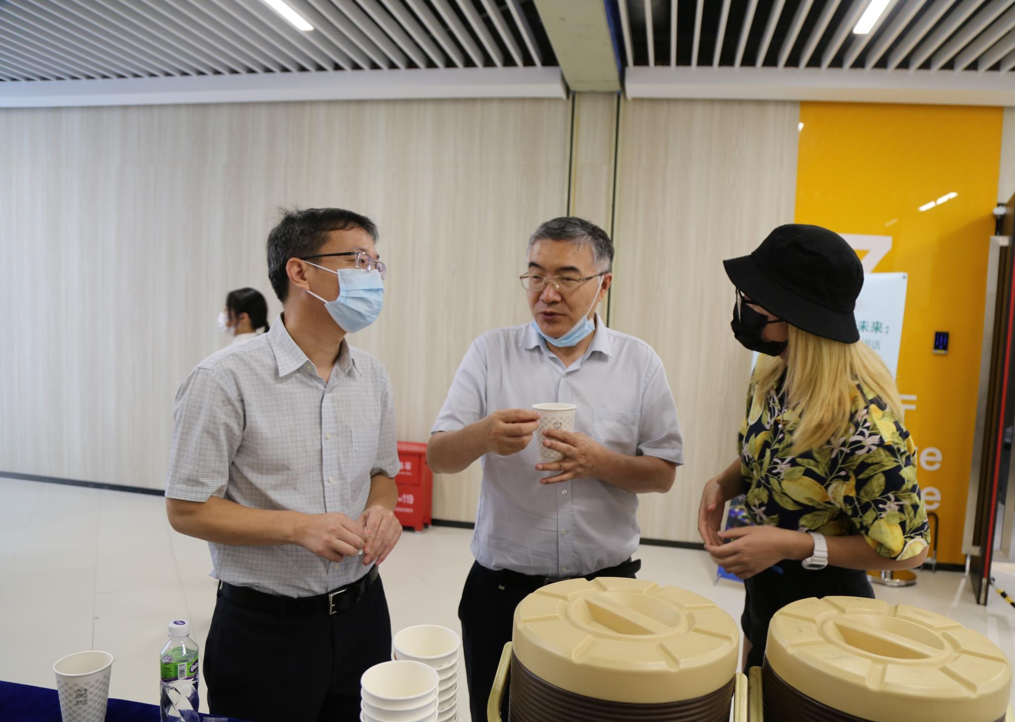 李教授(中)在讲座后继续与同学交流