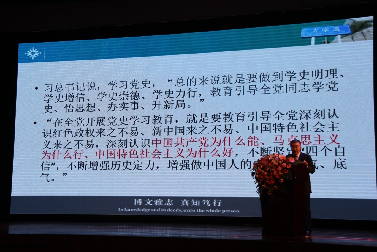 在回顾中国共产党百年奋斗历程时,李教授也分别从四个时期的大事记做了详尽的讲述。一是中国共产党的成立;二是新民主主义革命建国时期;三是社会主义革命建设时期;四是改革开放发展中国特色社会主义时期。从早期中国的不同探索之路,到历史上诸多重要历史阶段,以及对中国特色社会主义道路的不断开创和发展,一幕幕历史的回顾,让大家更深切地感受到建党、建国、执政、发展的苦难与曲折,辉煌与奇迹。