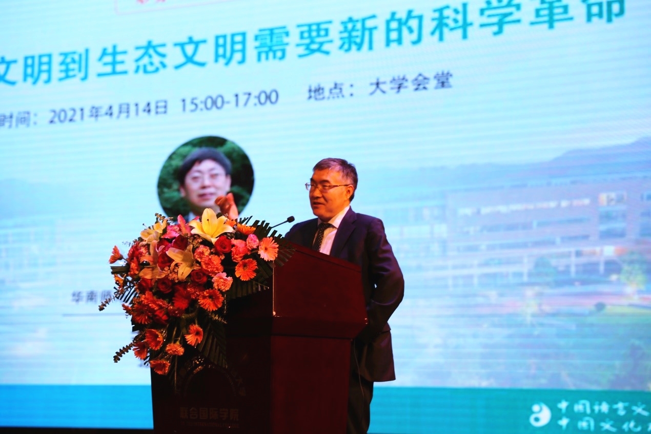 2021年4月14日下午,由我校教务长李建会教授主持,华南师范大学科学技术与社会研究院肖显静教授主讲的“形势与政策”系列讲座在大学会堂精彩开讲。生态文明建设是当前的热门话题,是统筹推进“五位一体”总统布局的重要步骤。肖教授围绕“从工业文明到生态文明需要新的科学革命”的主题,从人类文明的演进讲起,联系人类活动与自然,深入浅出地向同学们阐释了为何生态文明建设需要新的科学革命。