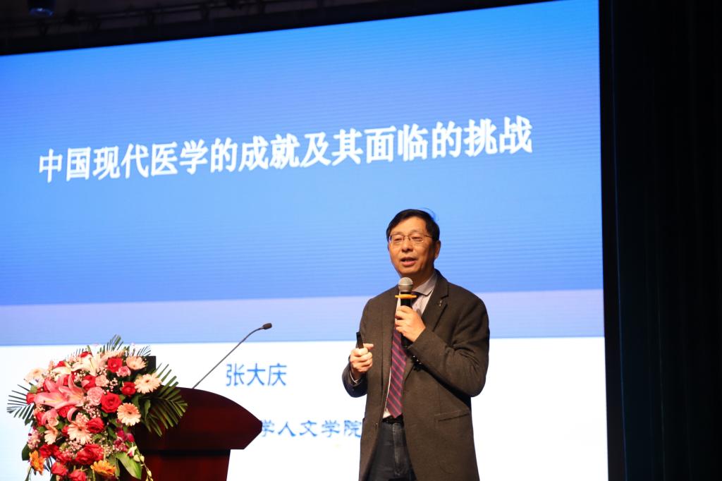 其后,张大庆教授为师生分析了“中国现代医学的成就及其面临的挑战”。张教授注意到,研讨会名为“国情国学”,每个人应该要了解我们的国情,其中医学的发展就关系到国情、关系到每个人的切身利益。张教授认为,当下医学存在诸多悖论,这是最好之时,也是最糟之际。他随时引证医学实例来说明医学领域的吊诡事实,这些事实包括:期望寿命延长和死亡率降低的同时,伴随病痛和伤残扩展以及经济的代价;人类越健康,同时也越担忧健康;一些疾病,如哮喘或成人型糖尿病的流行,与经济发展和物理环境的改变结构性地联系在一起;临床治疗效果令人鼓舞,但病人对医生的信任下降及医学职业的荣耀在减弱;现代医学越发达,人们对医学越有兴趣。张教授还为在座师生简要回顾了现代医学传入中国、现代医学体系建立、中国现代医学的发展过程以及当代医学的主要成就。在张教授看来,医学是科学,始终不能脱离人,甚至有精神信仰的意味,这也是人们寻医问药大体遵循西医、中医乃至江湖术士这一路径的原因所在。张教授的报告深入浅出,有效帮助听众了解了医学国情。对同学提及的网络问诊问题,张教授认为,其中存在太多不可控因素,为了保证医患的充分交流、病人的有效选择,最有效的方式还是面对面问诊。