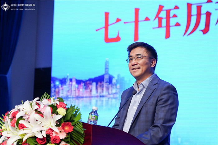 从中国道路、一国两制到“一带一路”倡议、粤港澳大湾区建设,汤涛校长回顾了新中国走过的七十年历程,并感叹:“新中国七十年的历程,不仅创造了中国奇迹,也为世界的繁荣和发展做出了重要的贡献。”