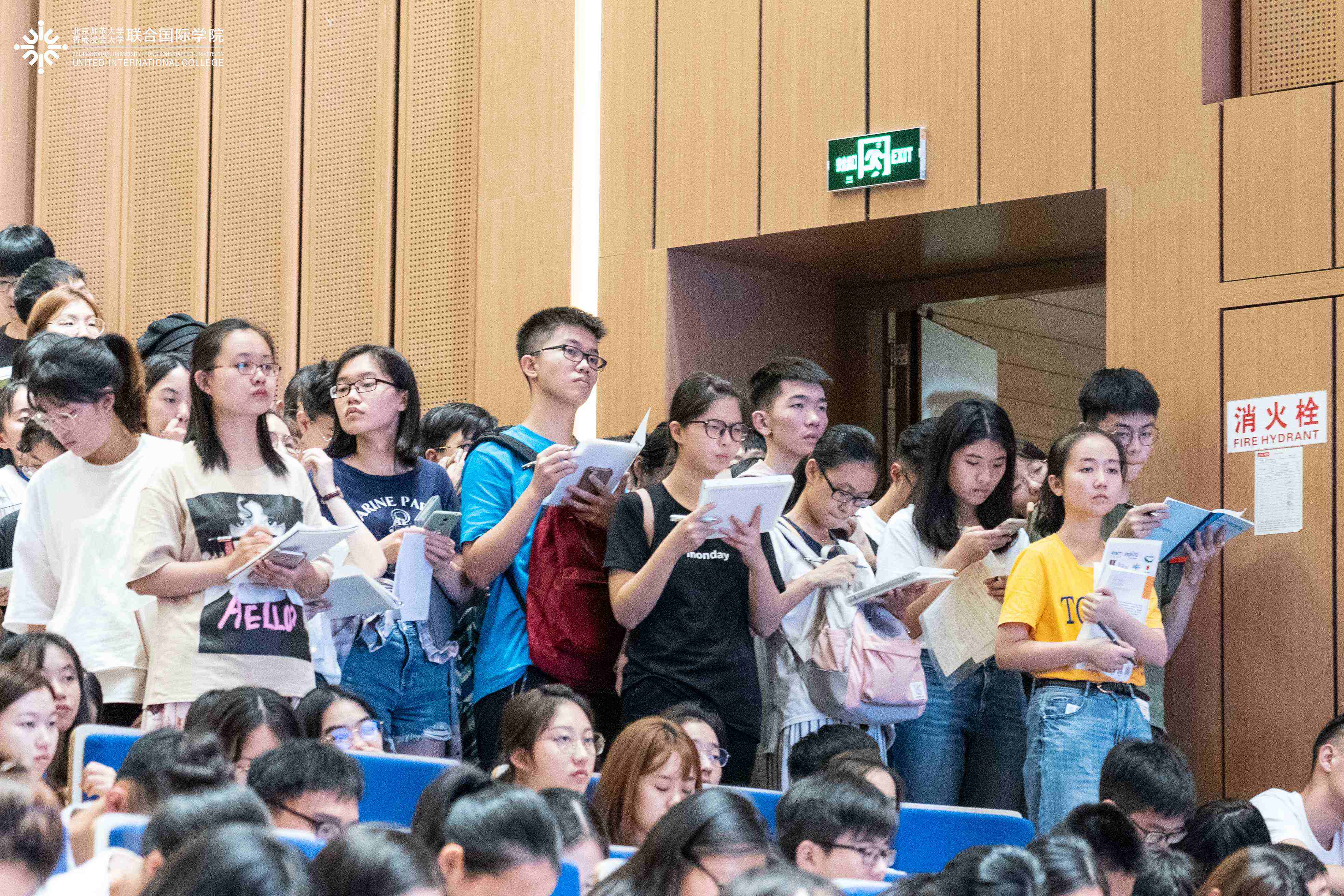 这也是新学期国情国学系列讲座第一讲,师生热情参与,演艺厅里连过道和舞台上都坐满了认真做笔记的学生。