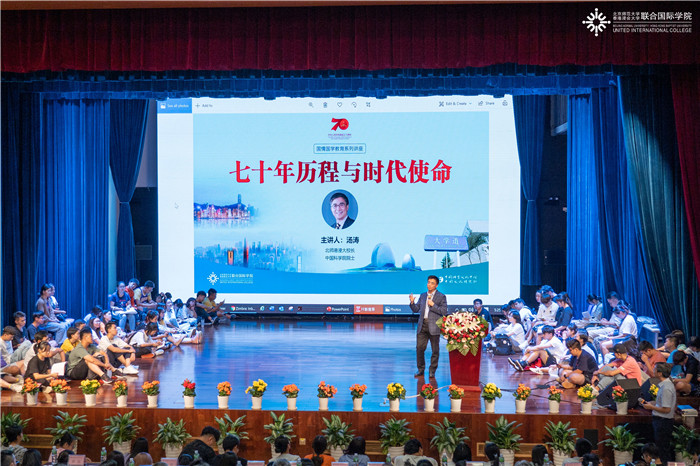 2019年9月18日,北师港浸大迎来了“校长第一课”。中国科学院院士、北师港浸大校长汤涛教授以《七十年历程与时代使命》为题,寄语青年学子,深刻了解历史,勇于担负时代使命。