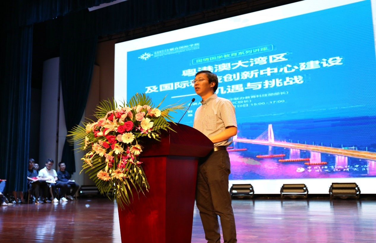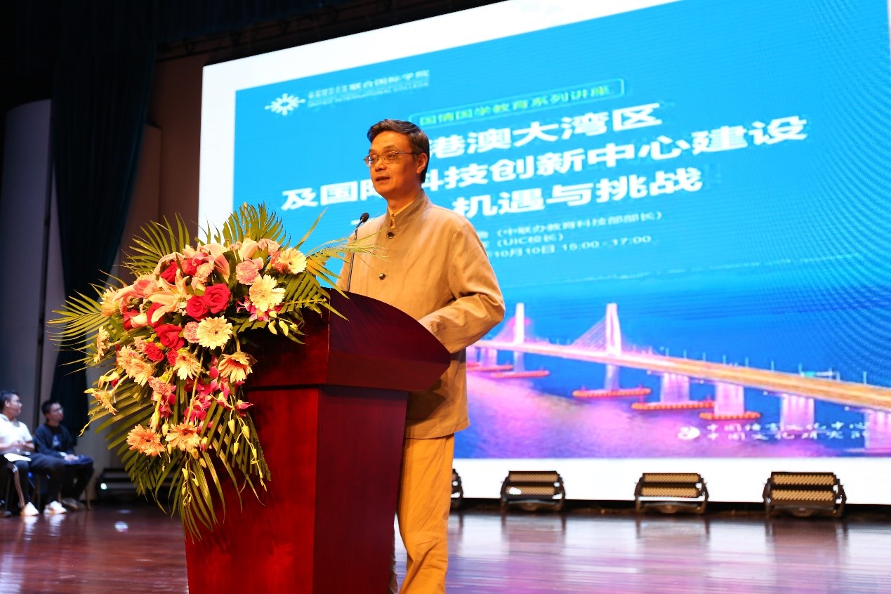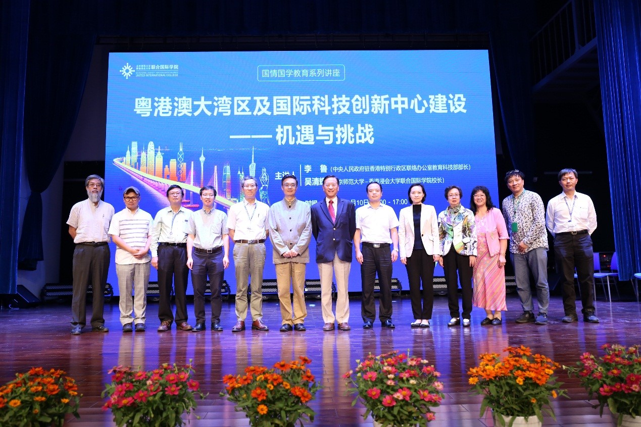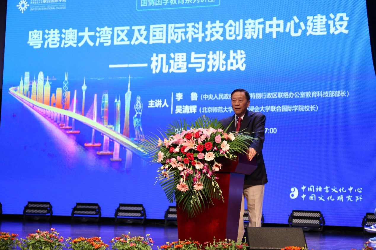 10月10日下午,中央人民政府驻香港特别行政区联络办公室教育科技部部长李鲁教授应邀来到UIC,与UIC校长吴清辉教授一起,为师生带来了一场以“粤港澳大湾区与国际科技创新中心建设——机遇与挑战”为主题的精彩演讲。珠海市教育局局长林日团先生、中央政府驻港联络办副处长黄宇女士、UIC副校长张聪教授、工商管理学部院长左龙佩兰教授、理工科技学部院长钟森文教授等领导和嘉宾出席,近六百位师生到场,整个演艺厅座无虚席,不少学生席地而坐聆听演讲。
