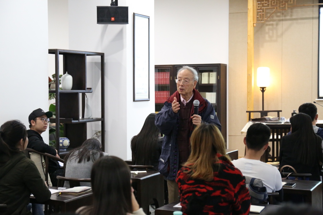 12月12日下午3时,2017华信杰出学者陈鼓应教授在古色古香的华信书院为师生们带来了中华文化传播研究院系列讲座第二场——《庄子寓言中的人生哲理》。现场座无虚席,许多师生闻讯而来,其中包括中山大学、澳门大学的师生。
