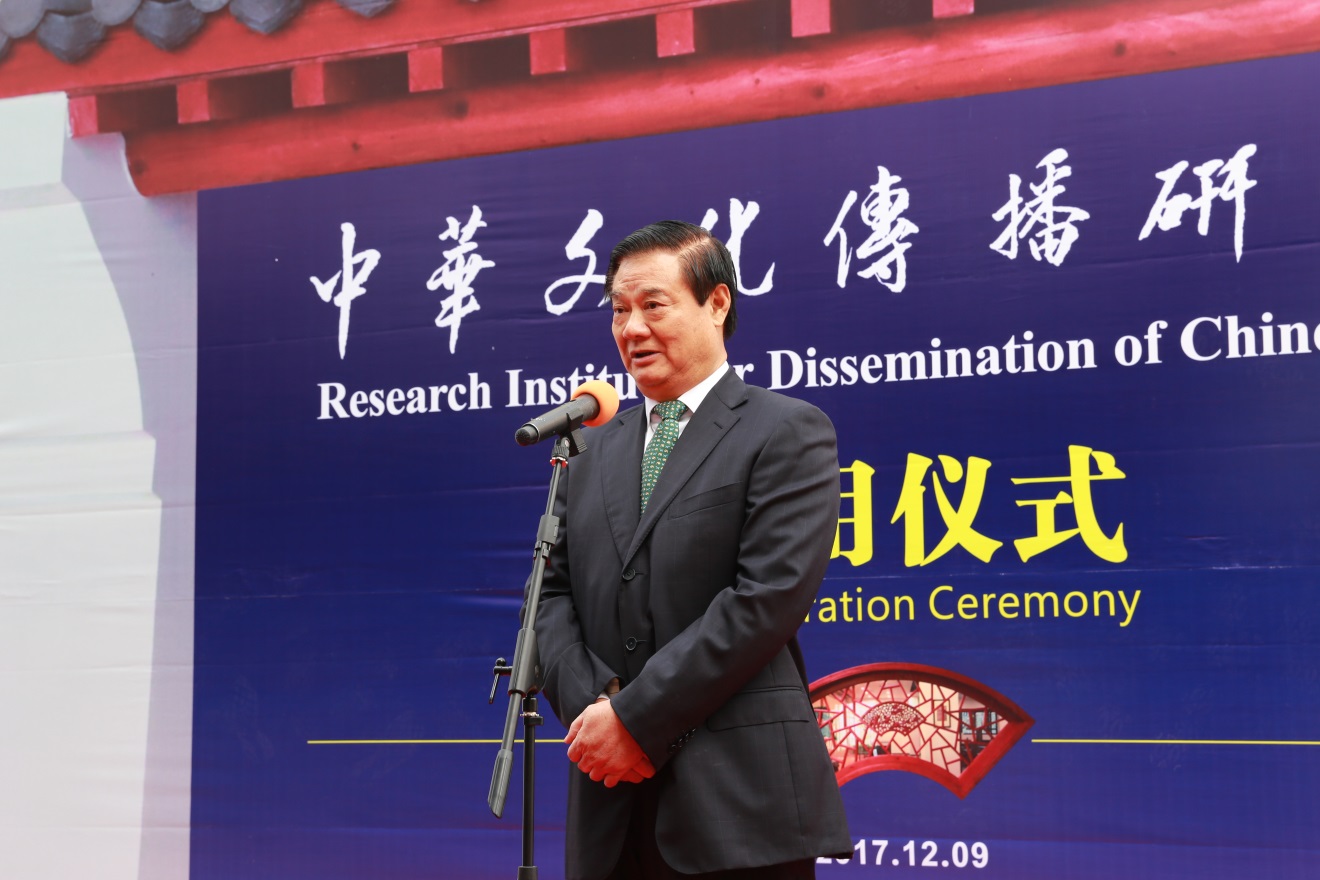 上海华信公益基金会执行理事长李光金先生随后致辞。他说,在新的时代,中国的优秀传统文化可以为人类的发展、世界的进步提供中国智慧和中国方案。我们要创建这样一个平台,可以研究和传播中国的文化,同时又能联合和融会世界先进文化;将来可以结合UIC的教学优势与华信在“一带一路”战略布局上的产业优势、基地优势,在人才教育、培训机制上有更多的合作和探索。他认为 “文同化,播必远”,相信朝着这个共同的目标一起努力,一定大有作为。