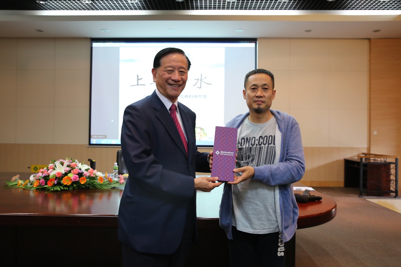 2017年4月6日,珠海画家金阳先生应邀来到UIC,与师生们畅谈《道德经》中“上善若水”的智慧。讲座由中国语言文化中心主任伍鸿宇博士主持,吴清辉校长出席并赠送纪念品。