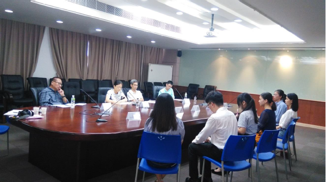此次奖学金面试评选小组由中国语言文化中心王琴老师、工商管理学部黄兆基老师、文化与创意学部万多明老师、人文与社会科学学部秦川老师组成。本着公开、公平、公正、选优的原则,今年奖学金面试与去年一样,采取抽签分组的形式,将参与面试的34名同学分为6组,依次进行面试。每小组抽选一个面试题,经个人观点陈述、自由讨论环节后,由评委根据每位候选人的综合表现进行评分。这次面试分组讨论的话题灵活多样,例如互联网时代的国学传播、今年新颁诺贝尔文学奖、网络热词等,都是从文化、文学及国情时事的热点剖析切入,引发多角度的深入探讨,由此展现学生在各方面的文化修养。