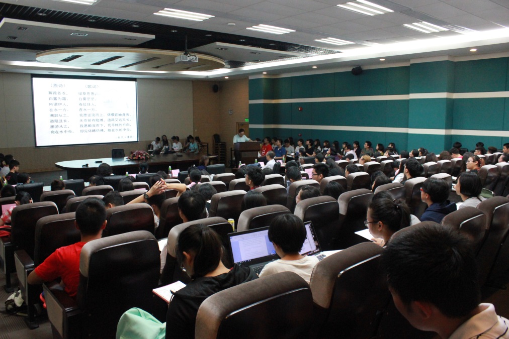在诗歌的历史介绍部分,蔡新华先生谈到,诗歌,来自人类劳动。“饥者歌其食,劳者歌其事”,劳动的号子成为音乐和舞蹈的节拍,是我们思想情感的寄托,这种寄托用语言表达出来就是诗,用语言唱出来就是歌,就是我们内心感情的激荡。中国是诗的国度,自诗经始,绵延离骚,汉赋乐府的大作,古诗十九首的名篇,洋洋洒洒直至唐宋,直到现代。在诗歌的艺术之美部分,蔡新华先生从诗歌的题材和体裁入手,细致分析了伤怀诗、爱情诗、游历诗、哲理诗等不同诗歌中的的艺术情感;也从音乐美、绘画美、语言美、诗意美等角度对诗歌的艺术格调予以阐释。深入浅出又淋漓尽致的为同学们展示了诗歌艺术之美。