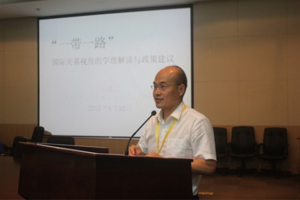 暨南大学国际关系学院副院长张振江教授从国际关系的视角来解读“一带一路”,他的演讲题目为“‘一带一路’:国际关系视角的学理解读与政策建议”。张教授首先解释了何为国际关系的视角,即以国家为基本单位,包括领土国家、民族国家,这个“国家”有着统一的、理智的政府,享有不受干预的主权。其次要把国家放在整个国际体系和国际规则中,整个国际体系必须有其范围、行为体和国际规则(包括国际法和国际条约)。长期以来,中国政府缺乏这种国际关系的视角。在鸦片战争以前,中国自诩“天朝上国”,将世界看作“中国的世界”。鸦片战争打开了国门,中国对世界的认知变成“中国与世界”。直到近代,我们才认识到中国是世界的一员,无论愿意与否,世界格局都将对中国产生影响,中国的举措也不可避免地影响着世界。正因为如此,张教授认为我们不仅要从国内的角度去分析“一带一路”,也要从他者的角度来审视自身,避免出现解读上的内外反差。“一带一路”不仅寻求的是经济文化的交流,也是一种国际关系的博弈。它不仅是中国的工程,更多的是中国与外国的合作。在此基础上,张教授从学理上提出了几项政策建议:第一,强调“丝路”是中国与其他国家的共享遗产。既然各国都在利用“丝路”的概念,与其互相争斗,不如合作共赢。第二,要维持利己和利他之间的平衡。第三,要寻求政府与非政府角色之间的平衡。总而言之,要把中国放到世界中去,把“一带一路”放到国际关系中,从国际视角而非本国视野来制定战略与计划。张教授热情洋溢,也引发了同学们对该问题的广泛兴趣。