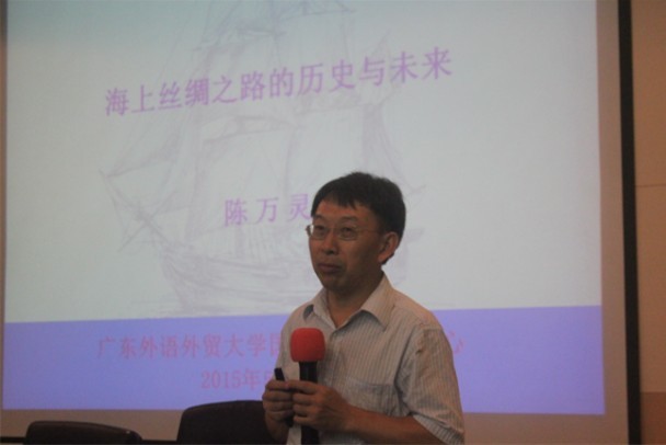 5月31日上午,广东外语外贸大学国际经济贸易研究中心主任陈万灵教授进行了题为“海上丝绸之路的历史与未来”的演讲。陈教授首先介绍了“海路”。“丝路”的概念最早是由十九世纪的德国地理学家李希霍芬提出的,研究表明,“海路”早于“陆路”。同“陆路”一样,“海路”不仅是一条交通和物品贸易之路,也是风俗文化、精神文明交流的无形之路。它成于秦汉,唐代时形成了网络,成熟于明清,明代郑和七下西洋,船队规模空前庞大,此举定格了“海路”。“海路”东至日韩,南及东南亚,最远到达非洲东海岸。关于“海路”仍然存在时间、主体、起点和终点方面的争议,目前达成的基本共识是:“海路”是以丝绸贸易为象征的、在中国古代曾长期存在的、中外之间的海上交通线以及与之相伴岁的经济贸易关系。它不仅是一条固定的有形道路,更代表着一种精神和文化。此外,陈教授还介绍了“海路”的东、南、西三条航线。最后,陈教授对“海路”提出了未来的展望:一、“海路”区域各国相互开放,多边合作;二、互利共赢、包容式发展;三、中国承担国际公共治理和提供公共品的大国责任。就国内来看,要建立完善的自由贸易区和贸易机制,这样才能在统一框架下共同发展。