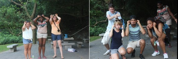 虽然外籍学生的汉语学习才刚刚开始,但课程的老师希望汉语的学习不仅局限于课堂之内,更延伸于课堂之外;“随机施教”是我们的教学方式,而“学以致用”则是对汉语学习者的要求。在课堂上,外籍学生刚刚学习了中国的十二生肖的表达;在课堂外,我们让汉语的学习立体起来,请他们用身体语言表现出十二种动物。在拍照中,大家对“十二生肖”的认识更加鲜活与生动。下面的图片是外籍学生表现的“十二生肖”,你猜出来是哪种动物了吗?