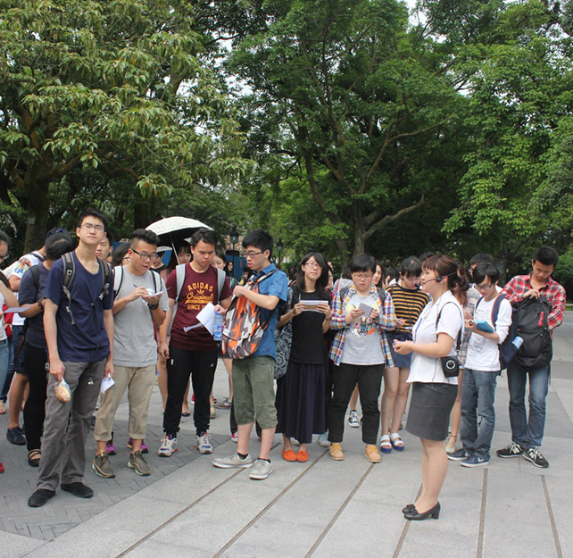 为丰富教学模式,提升教学效果,更好地帮助学生学习和理解孙中山先生的生平和“三民主义”思想,2014年4月26-27日,中国语言文化中心组织了一次中山故居实地教学活动。中国语言文化中心的任课老师在学生事务处和综合服务处的支持下,前后分七批,带领一年级25个班级,共计1350多名同学前往中山故居进行现场参观和学习。