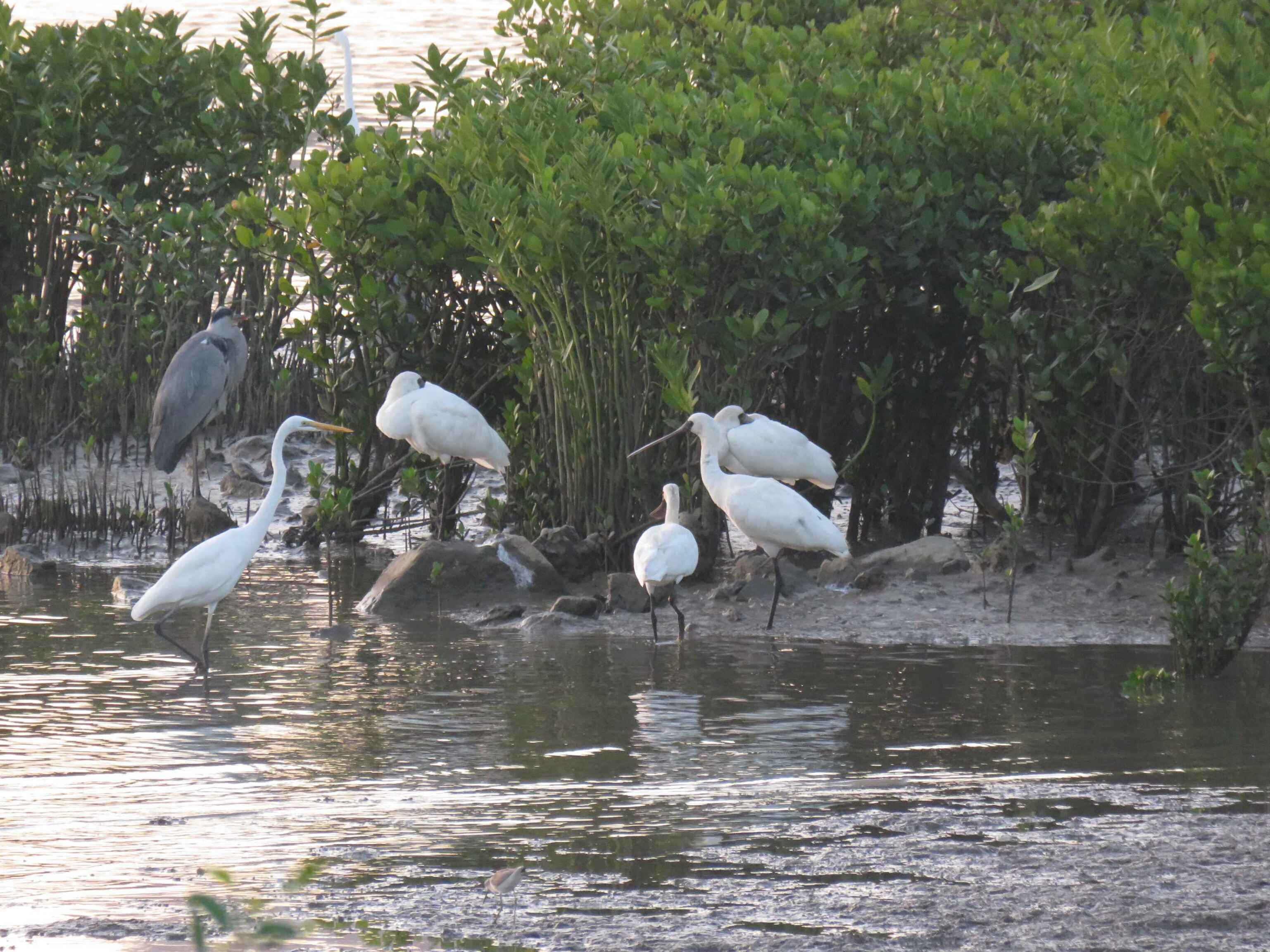 观鸟队师生拍摄到的黑脸琵鹭(右边四只)