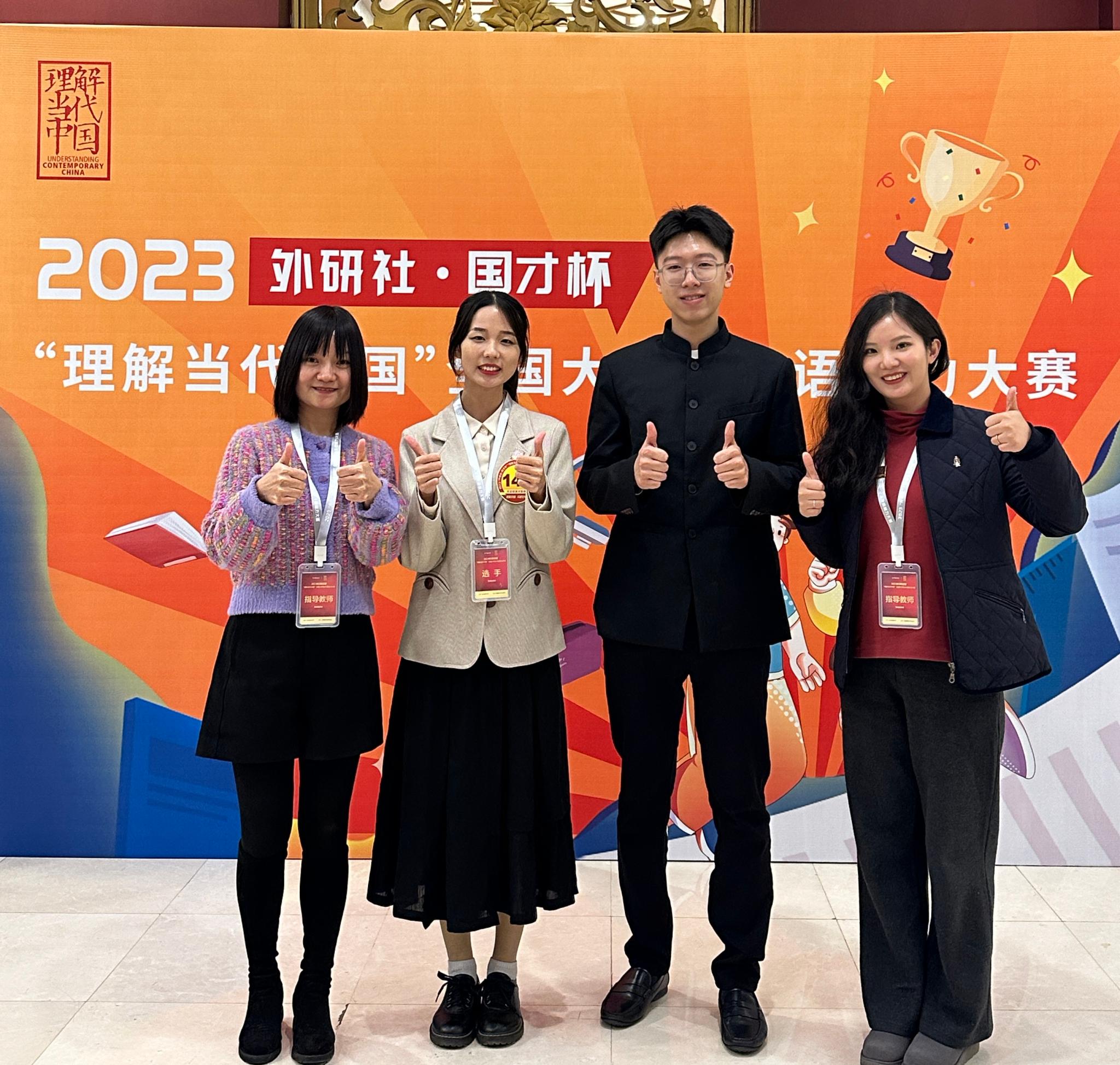 通识教育学院英语语言文化中心的张淑静和汪鹭两位老师作为本次国赛演讲赛项的带队指导,带领两位UIC选手前往北京参赛。赛前,两位指导老师和远在珠海的其它指导老师线上线下一起对选手进行最后的“精雕细琢”。在比赛中,UIC选手们表现出过硬的语言综合运用能力、思维能力和跨文化交流能力,具有国际视野和家国情怀的新时代大学生风采。
