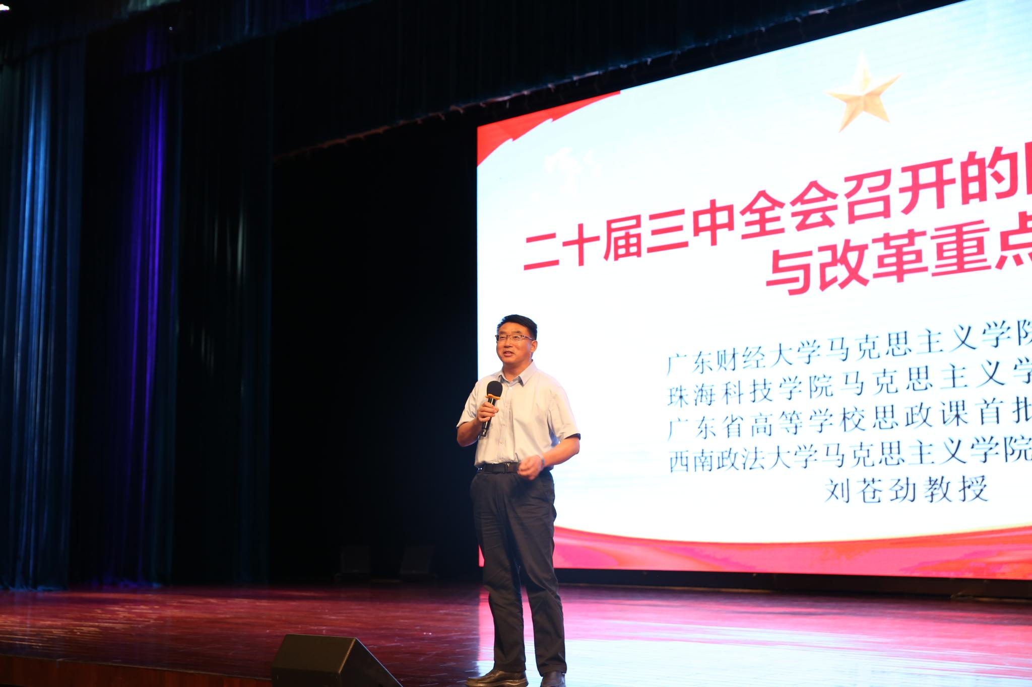 刘苍劲教授的演讲语言生动,逻辑清晰,他通过生动的历史例子和深入的二十届三中全会会议精神解读,使现场的听众对当前的国际国内形势以及改革方向有了更加清晰的认识。通过这次讲座,同学们不仅加深了对当前形势的理解,也更明确了作为新时代青年所肩负的责任。讲座持续了两个小时,最终在热烈的掌声中圆满结束。