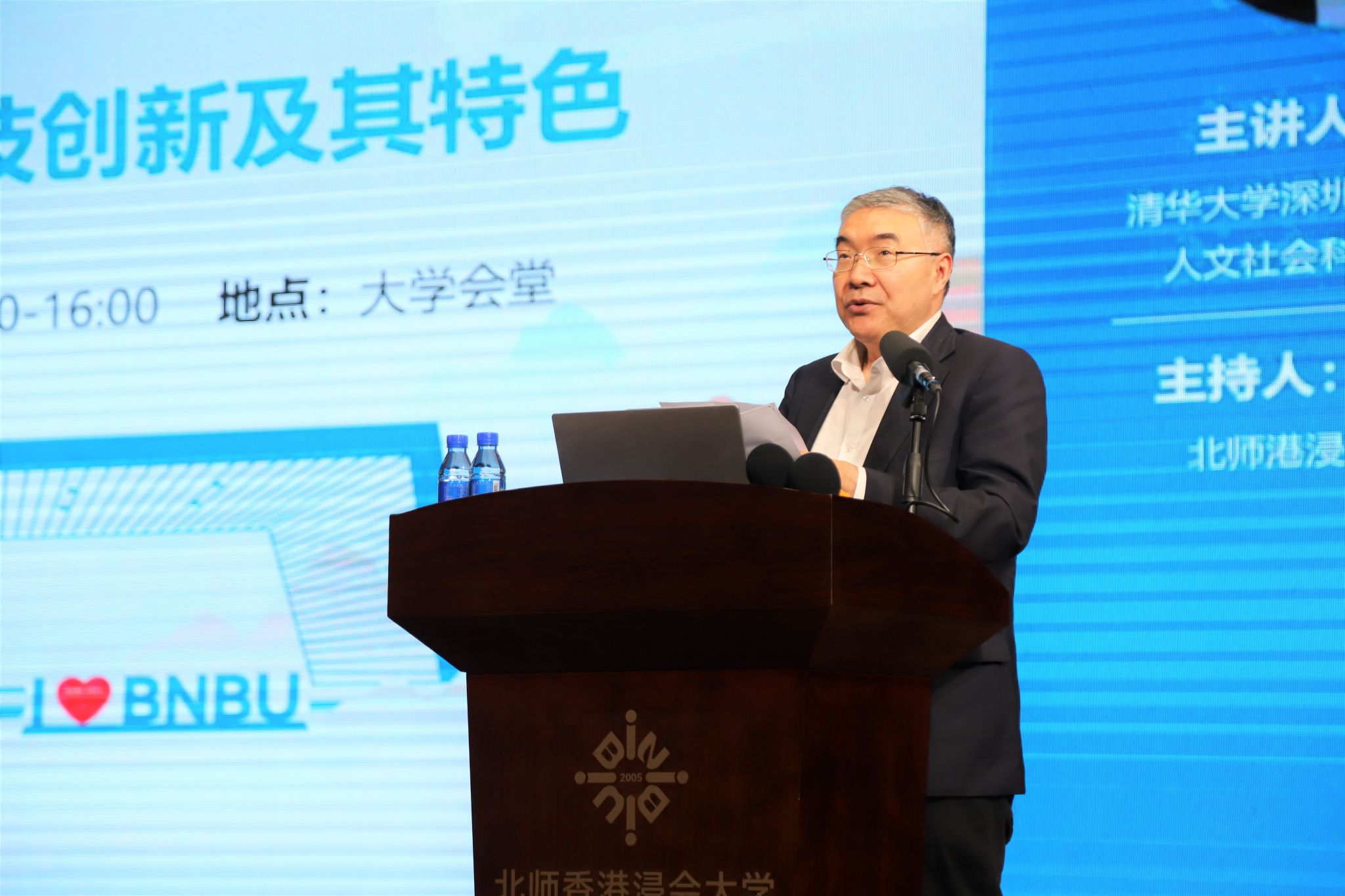 2025年4月30日下午两点,北师港浸大“形势与政策”大讲堂第130讲在我校大学会堂举行。此次活动由北师港浸大教务长李建会教授主持,主讲嘉宾是清华大学深圳国际研究生院人文社会科学学部杨舰教授,其演讲题目为“中国科学的前沿与科学前沿的中国——中国的科技创新及其特色”。我校师生齐聚一堂,聆听了杨教授的精彩演讲和深刻见解。