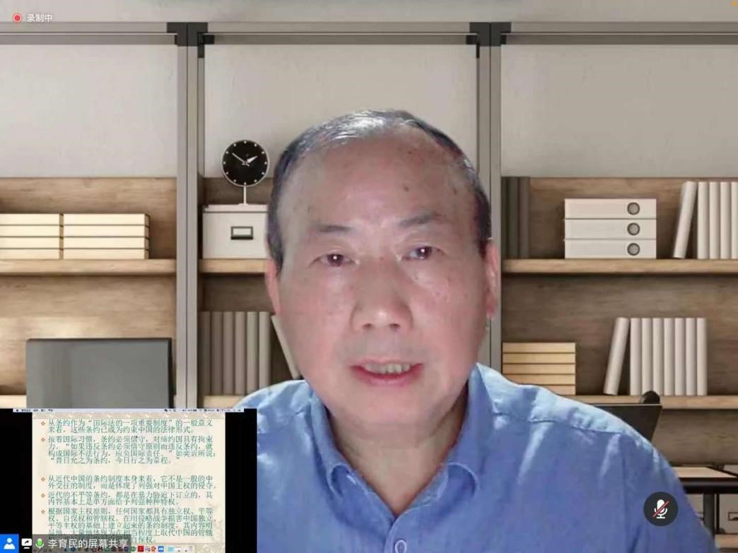 5月18日晚,湖南师范大学历史文化学院李育民教授的《条约制度与近代中国》讲座也同样精彩。讲座伊始,李教授开门见山地点明了国际法意义上的条约制度是一个以条约为主要沟通形式的国际关系模式,是一种不同于封建社会朝贡体系的新型国际关系。而西方列强通过战争暴力胁迫近代中国签订的条约以及由此建立的条约关系则是特定时期的产物,这体现了列强对中国主权的侵夺,并非平等合理的国际交往模式。随后李育民教授详细地介绍了条约制度的源起和内涵,及其与近代中国之关系。条约制度产生于欧洲,以国际法为基础,创新提出具有近代性质的国际主权原则,强调签署条约的诸方均具有独立权、平等权、自保权和管辖权。但与之相悖的是,西方国家在将条约制度推向中国等东方国家时,赋予了其有悖于国家主权原则的不平等内涵。以我国为例,近代中国条约制度产生于鸦片战争,至第二次鸦片战争基本形成,其后又获得进一步发展。《马关条约》的签订,彻底摧毁了封建中国传统对外关系模式即藩属国朝贡制度,不平等条约制度和单一国际秩序就此成为近代中国唯一的对外关系模式。于是,条约制度对中国社会产生了巨大且复杂的影响:一方面,条约制度使得近代中国的国际地位一落千丈,对外贸易处于被动宰割状态,民族资本主义丧失资本原始积累的机遇,社会局势动荡,中国逐步沦为半殖民地半封建社会;另一方面,其也促使了传统社会的变革,逐步引入近代政治文明,社会阶层更加丰富,民众的思想观念也逐步发生变化。最后,李育民教授指出,条约制度虽然具有近代性质,但其以损害主权为代价,使中国遭受巨大的屈辱和损失,也由此开启近代百年沉痛历史。正惟如此,中国人民先后以各种方式开展废约运动,中国共产党在废约反帝的斗争中起到中流砥柱的作用。