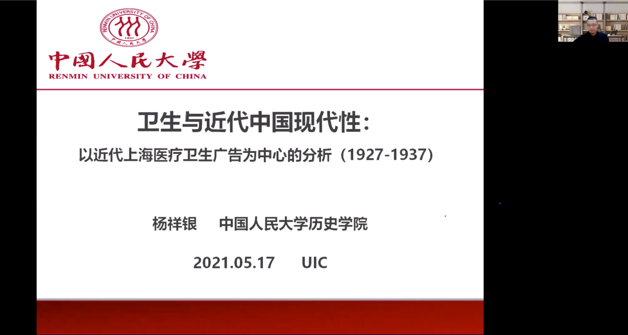 5月17日晚,中国人民大学历史学院杨祥银教授带来了主题为《卫生与近代中国现代性》的讲座。从事中国近代医疗史研究的杨教授以上海医疗卫生的广告为切入点,分析了医疗广告当中呈现的卫生与近代中国现代性之间的关系问题。通过展示近代上海医疗卫生的广告图像,杨教授指出医疗卫生广告不仅将个人身体的健康与国家的富强紧密地结合起来,还刺激了消费主义文化,进而引发了人们对于现代健康生活方式的想象与欲望。这两种象征意义正对应了近代中国现代性的两个维度:对于建立现代民族国家的强烈诉求与追求现代生活方式的强烈欲望。接下来杨教授解释了一些医疗卫生广告中图文的象征意义,以此分析个人身体、卫生和国家如何与消费相联系。例如这些广告会用“救国必先强民,救民必先强身”来表达政治性、民族性和爱国性;通过政府宣传国货来激发民众的民族意识;通过提倡改良市民公共卫生行为、习惯、观念来强调卫生强国的重要性等。由此可见,在近代中国,个人身体已变成了一个富有政治性的场域,一个被教化权力与知识交结介入的场域。最后,杨教授总结道,医疗卫生广告在近代中国现代性的建构中一方面强化与传播了社会精英分子所倡导的关于民族国家的知识论述,另一方面又为现实生活中近代中国无法建立一个独立民族国家的残酷现实提供了一个想象的空间。讲座后,杨教授和同学们还对于公共卫生现代化、“临终关怀”与广告宣传之间的关系等进行了热烈的讨论。杨教授在讨论中还引导同学们应继续保持钻研的态度,勤于思考,主动搜集资料以提升自己的学术研究能力。