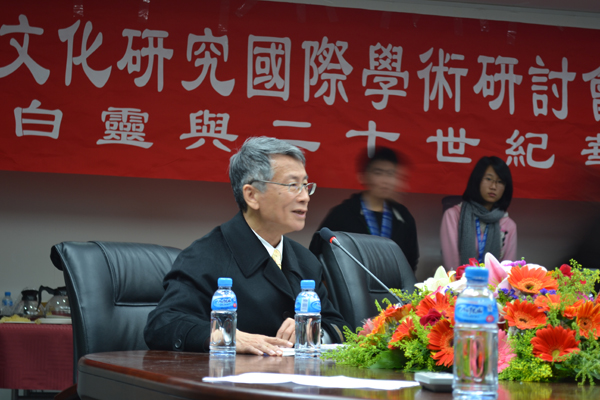 研讨会于12月18日上午九点在B102开幕。副校长张聪教授、冯燊均国学基金会主席冯燊均先生、香港大学黎活仁教授、《文艺争鸣》主编张未民先生、北京大学龚鹏程教授、著名诗人白灵教授、澳门大学朱寿桐教授、台湾明道大学罗文玲教授和我校科研处长张根发教授等在主席台就坐。中国语言文化中心主任伍鸿宇博士主持开幕式。张聪副校长首先致欢迎辞,他欢迎与会学者的到来,并衷心希望研讨会取得圆满成功。