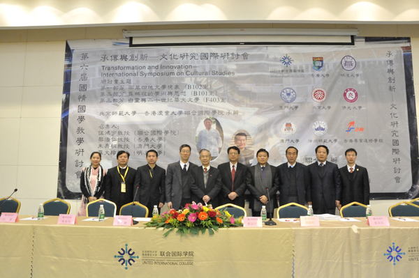 2010年12月18日,由联合国际学院中国语言文化中心、香港大学中文学院、北京大学文化资源研究中心、澳门大学中文系和台湾明道大学中文系等多家大学与机构联合主办的“承传与创新——文化研究国际学术研讨会”暨第六届国情国学教学研讨会在我校举行。来自香港大学、北京大学、澳门大学、复旦大学、台湾明道大学、中央大学等两岸四地的六十余位学者与会。