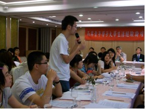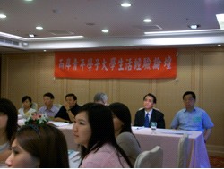 抵达台北的第二天下午,在我们入住的康华大饭店会议厅,举办了"两岸青年学子大学生活经验论坛"。来自全台十多所大学的几十名大学生与24名UIC学生一起交流大学生活,分享了彼此的生活经验与学习心得。大家对共同感兴趣的校园生活与学习问题,展开了激烈讨论。论坛结束后,全体学生一起自助晚餐,自由交流,两岸学子相处非常融洽。