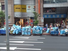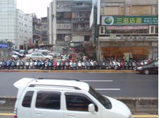 但是,当巴士驶入市区,台湾风情便扑面而来。满眼五彩缤纷的繁体字招牌,停满大街两侧的电动车,绿树浓荫的分区大道,手拎垃圾袋等待垃圾车的市民,逆向行驶的公车专用道,让人目不暇接。